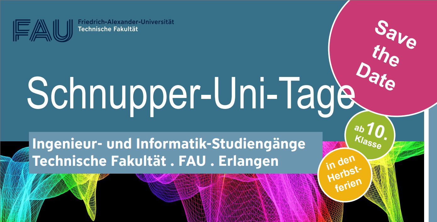Im Rahmen der Schnupperuni 2023 erleben Schülerinnen und Schüler ab der 10. Klasse die Technische Fakultät live und hautnah. Vom 30. Oktober bis 03. November 2023 öffnen fünf Departments ihre Türen und bieten spannende Programme zur Studienorientierung an. Interessenten können sich auf Experimente, Übungen, Laborführungen, Praktika und vieles mehr freuen. In lockerer Atmosphäre besteht die Möglichkeit, Studierende und Lehrende kennenzulernen und Fragen zu Studium und Universität zu stellen.