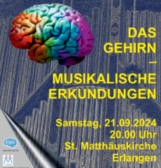 Am Samstag, dem 21.09.2024 findet um 20 Uhr in der St. Matthäuskirche in Erlangen die Veranstaltung „Das Gehirn – musikalische Erkundungen“ mit dem