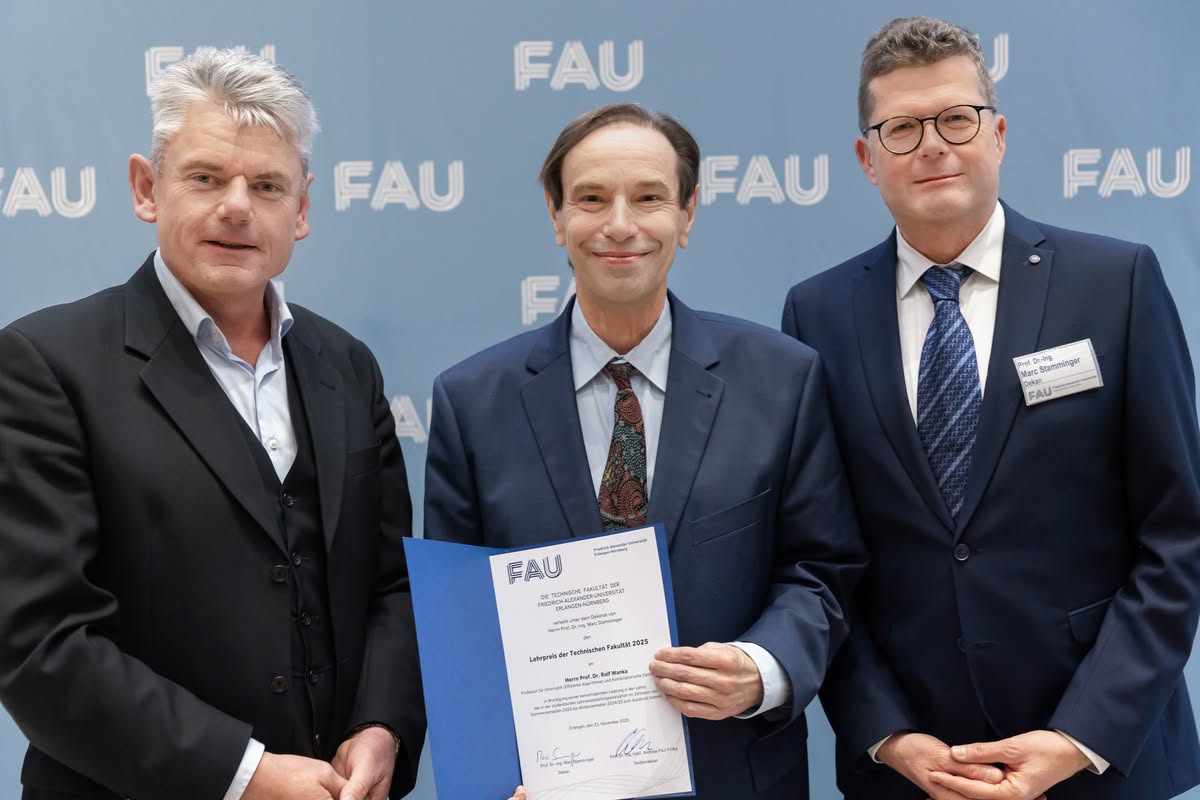 Im Jahr 2025 wurde der Lehrpreis an Prof. Dr. Rolf Wanka, Inhaber der Professur für Informatik (Effiziente Algorithmen und Kombinatorische Optimierung), verliehen.