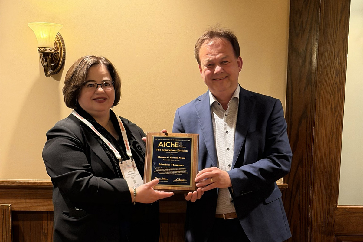 Prof. Matthias Thommes, Inhaber des FAU Lehrstuhls für Thermische Verfahrenstechnik, wurde mit dem renommierten Clarence (Larry) G. Gerhold Award des American Institute of Chemical Engineers (AIChE) ausgezeichnet.